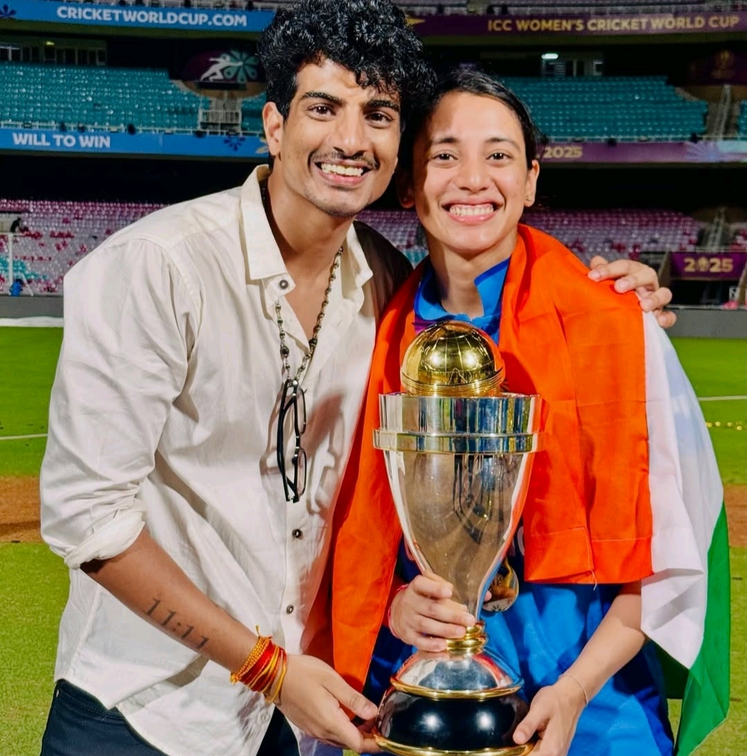 Palash Muchhal Wedding Date: भारत की महिला क्रिकेट टीम ने आईसीसी महिला विश्व कप 2025 की ट्रॉफी जीतकर इतिहास रच दिया है। टीम की उप-कप्तान स्मृति मंधाना ने टूर्नामेंट में शानदार प्रदर्शन किया, लेकिन इन दिनों उनकी निजी जिंदगी भी उतनी ही चर्चा में है। उनका मंगेतर, संगीतकार और फिल्म निर्देशक पलाश मुच्छल (Palash Muchhal), विश्व कप फाइनल के बाद सोशल मीडिया पर वायरल हो गए हैं। पलाश ने ट्रॉफी के साथ तस्वीरें साझा कीं और लिखा, “अभी भी सपने में हूं।” स्मृति ने दिल की इमोजी से जवाब दिया। फाइनल के बाद दोनों हाथों में हाथ डाले स्टेडियम से बाहर निकले, जो फैंस के बीच खूब सराहा गया।